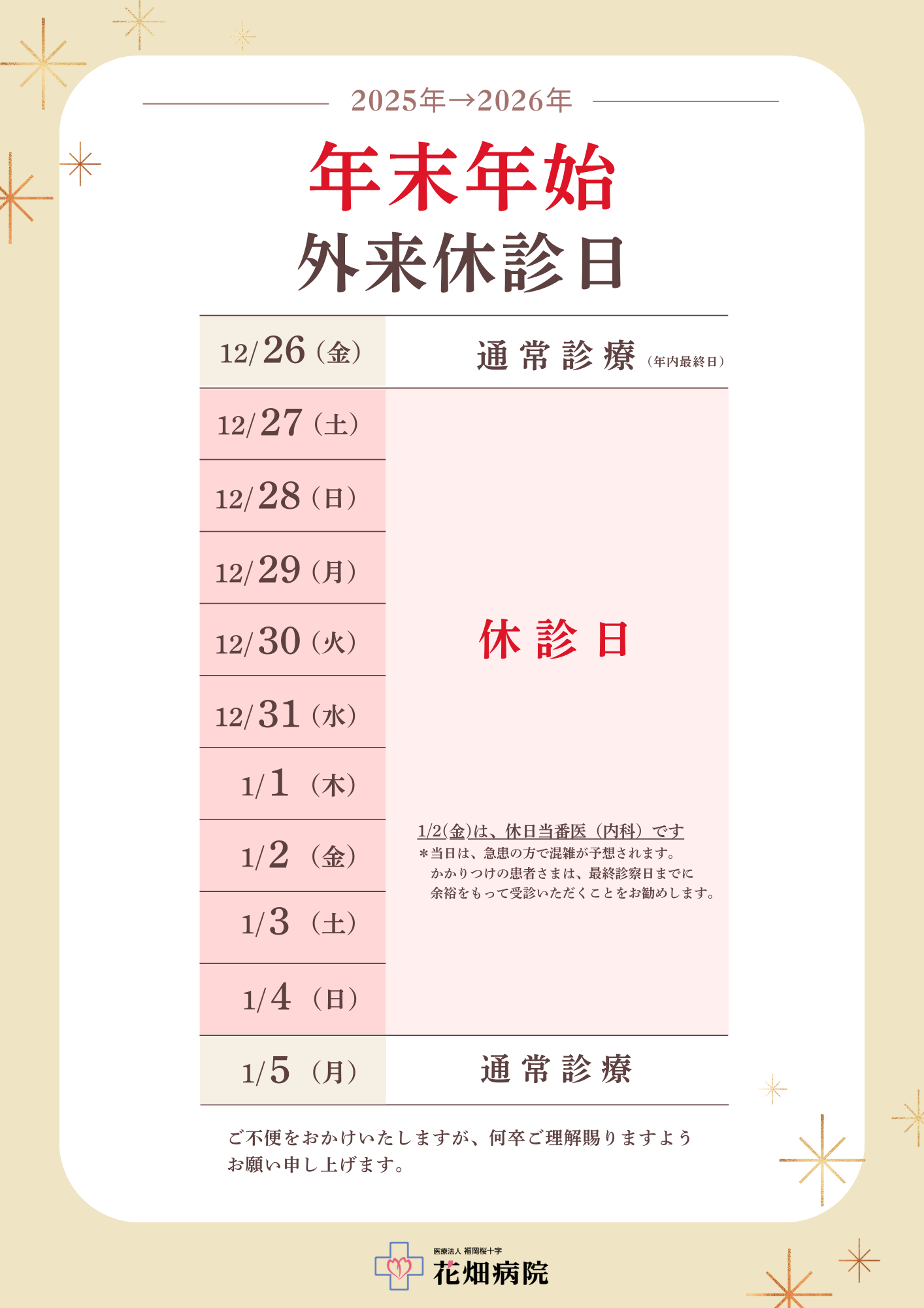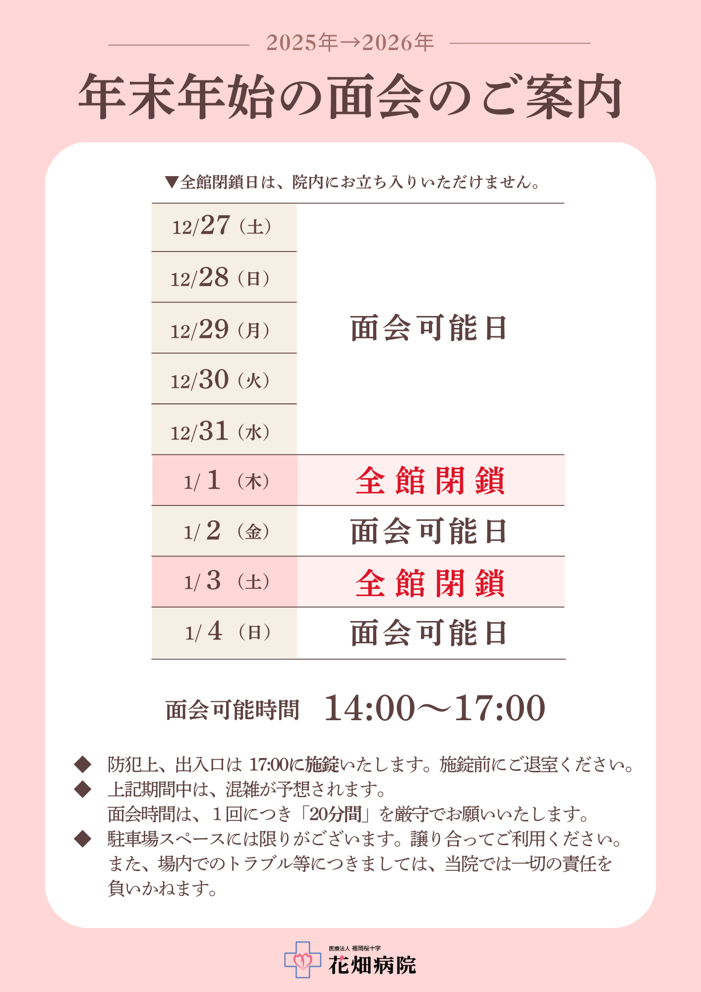 年末年始期間中の「面会」「外来休診」のご案内(2025年→2026年)