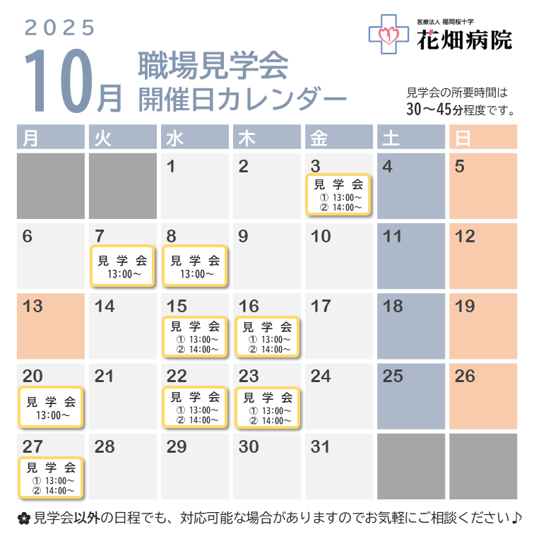 *カレンダーの開催日以外にも対応可能な場合がありますので、お気軽にご相談ください。